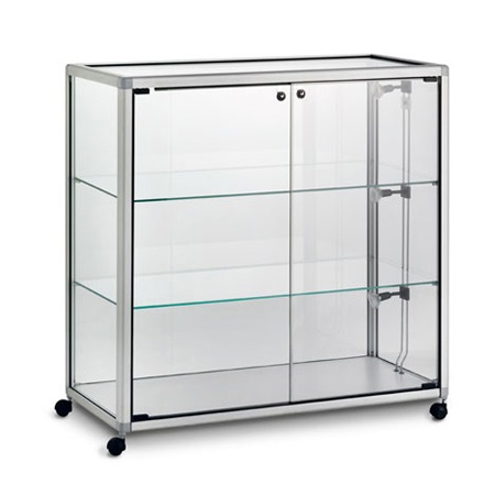 Vetrina espositiva cm 98x42x112H, colore silver, 2 ripiani